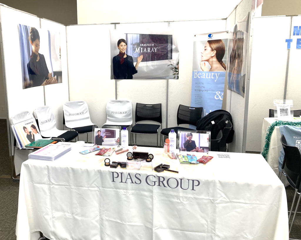 会場は企業の特徴ごとにカテゴリ分けされていたのですが、ピアスグループは「トータルビューティー企業」のエリアに出展しました。