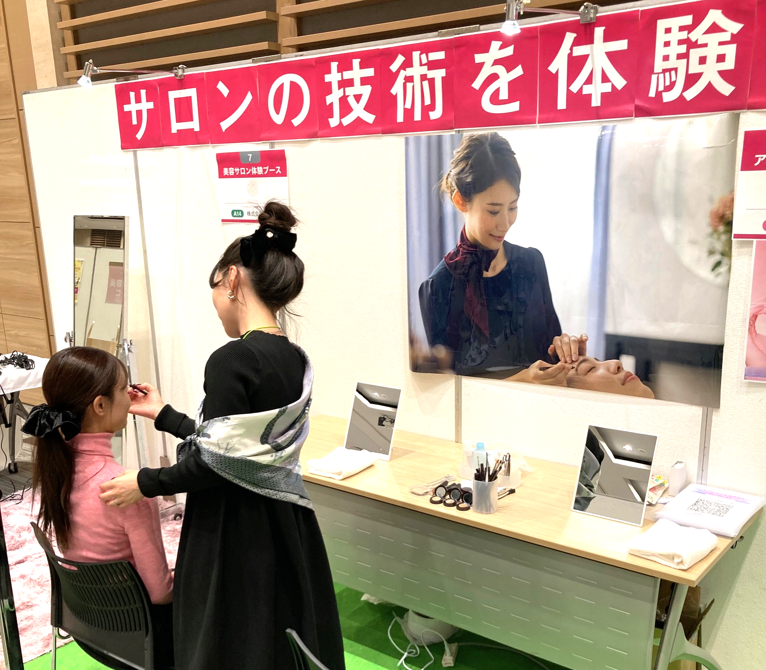 他社さんのブースでもヘアセットや肌診断などをやっていて面白そうでしたが、アイブロウ(眉)の施術体験ができるのはピアスグループだけでした🪞